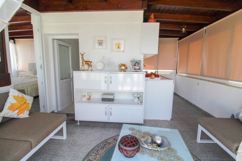 TERAS KATINDA: 1 YATAK ODASI + İKİNCİ SALON OLARAK KULLANILAN OTURMA ALANI + KÜÇÜK BİR MUTFAK VE AÇIK TERAS KISMI YER ALMAKTADIR.